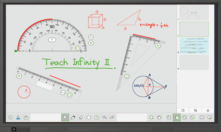 Choose from a large list of editable tools for math, physics and chemistry to enhance everyday interactive learning, right on your document or background of choice. Use 3D tools, a built-in calculator, rulers, compasses and more, all within Teach Infinity II.