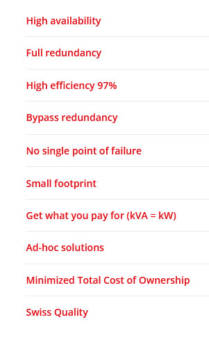 The CumulusPower range is designed to protect small and mid-sized Datacenters as well as other mission critical applications with a maximum power of up to 3.6 MW.