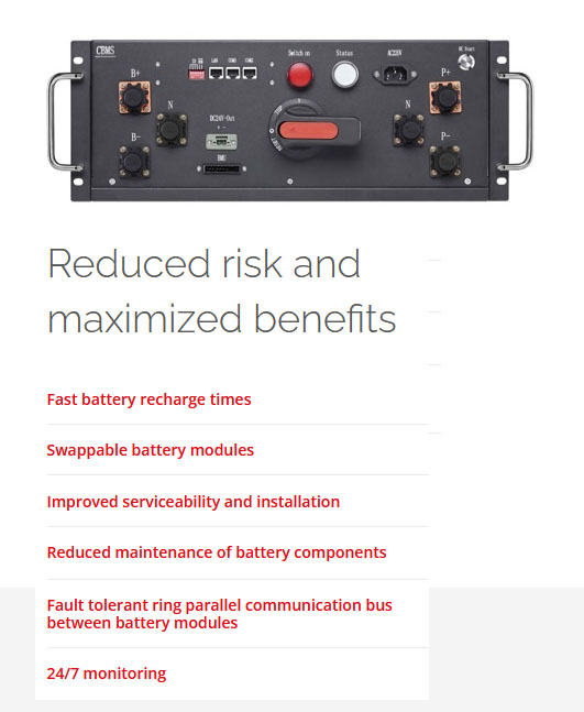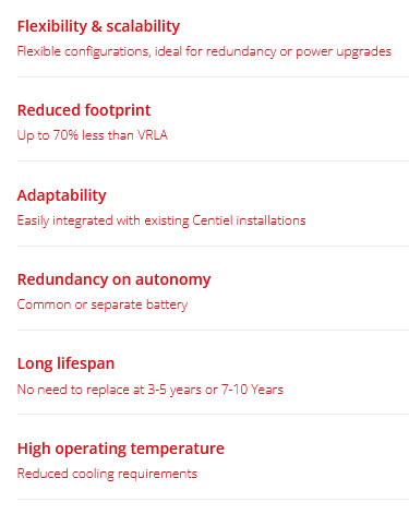 Centiel’s LiFePOwer li-ion battery solution has been developed using LiFePO4 chemical composition. Unlike other li-ion solutions, LiFePO4 can operate at higher temperatures without generating O2, removing the risk of thermal runaway.