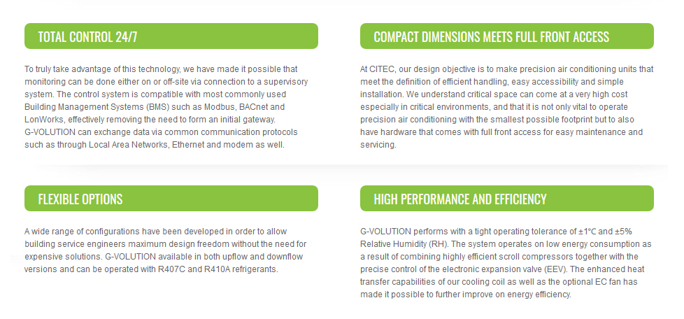 Our processor is what makes our Energy Saving units the pioneer in energy-efficient solutions for precision air conditioning. In the long term, the G-VOLUTION will provide significant reductions in operating costs as well as shorten remuneration periods.