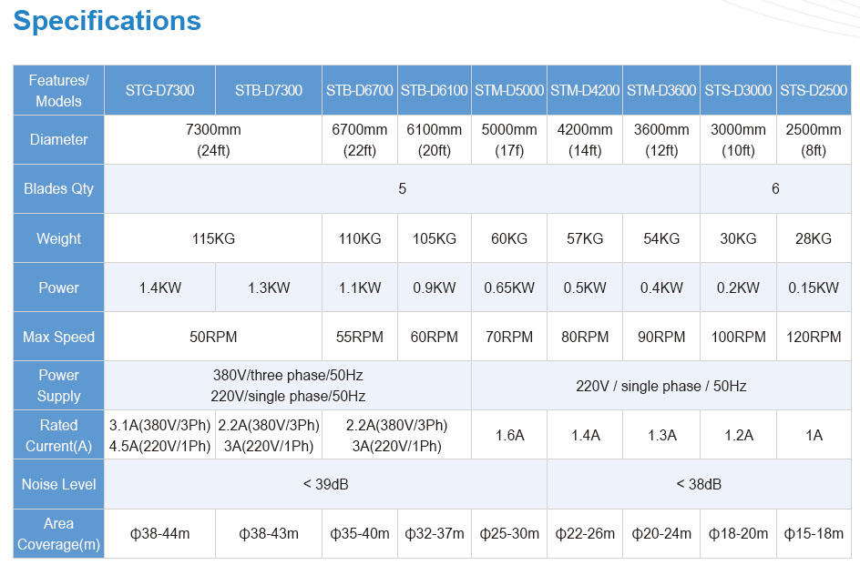 HVLS (High Volume Low Speed) is the new solution of energy saving to solve the cooling or ventilation problem of large space. Our large energy-saving ceiling fans comes with maximum diameter of 7.3 meters. This HVLS Fan takes only 1.5 KW or less power to cover at least area of 1,450SQM, which is equivalent to the effect of 30 small fans. and helps thermally equalize a space by moving air in the most efficient way possible. The fans use their long airfoil blades to move high volumes of air at low speeds, which provides a balanced airflow without the kind of disruptive air movement that could blow the hat off of your head. The end result is a gentle breeze that circulates the air, improving comfort and indoor air quality. This puts less demand on HVAC systems, reduces moisture, and, most importantly, makes the occupants of a building feel more comfortable.