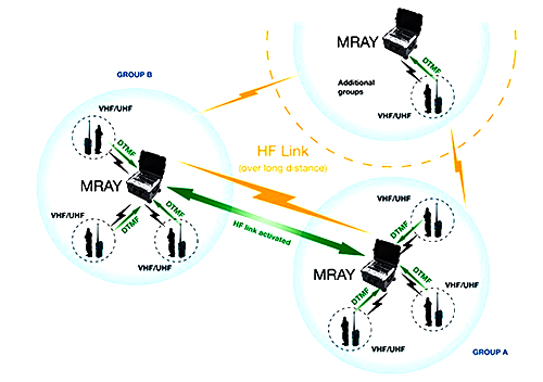 Solution: A HF link crosspatched to an LMR repeater at each site enables long distance communications between two or more local LMR sites — previously a leased line, microwaves or private IP networks were the only option. VHF and UHF cannot provide this link due to the physical nature of propagation.