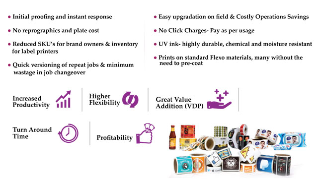 The label printing market is going through a transition period where run lengths are becoming shorter and shorter, margins are shrinking and fast turnaround time to market is creating huge pressure on label printers, here ColorNovo bridges the gap between end users, brand owners and the label printers enabling them to print on demand. It utilizes thePiezoDOD inkjet print head technology that enables to print high quality labels at 600 X 600 Dpi native resolution at speeds of up to 70 m/min and up to 330 mm of print widths, delivering the expectations of a label printer in terms of lowest total cost of ownership and fastest return on investments. Digital is the future, so is the Digital press, it comes with the power of printing short to medium runs very effectively and economically, additionally featuring great value of personalization, variable data and security printing in real time production at one go.
